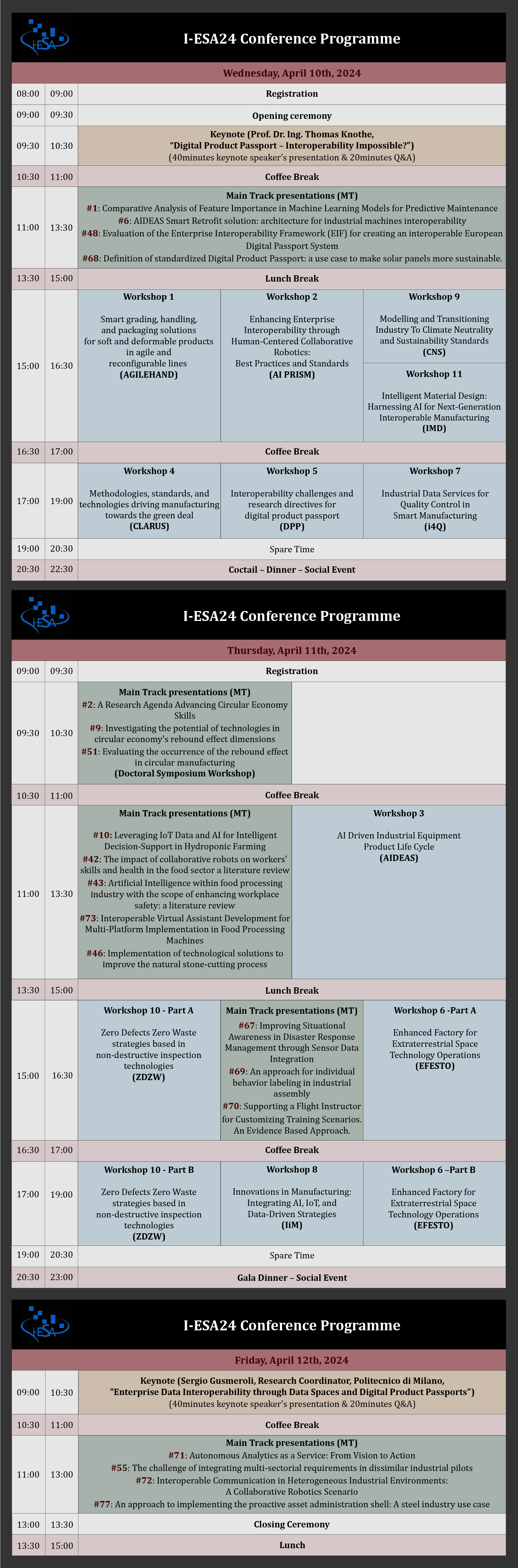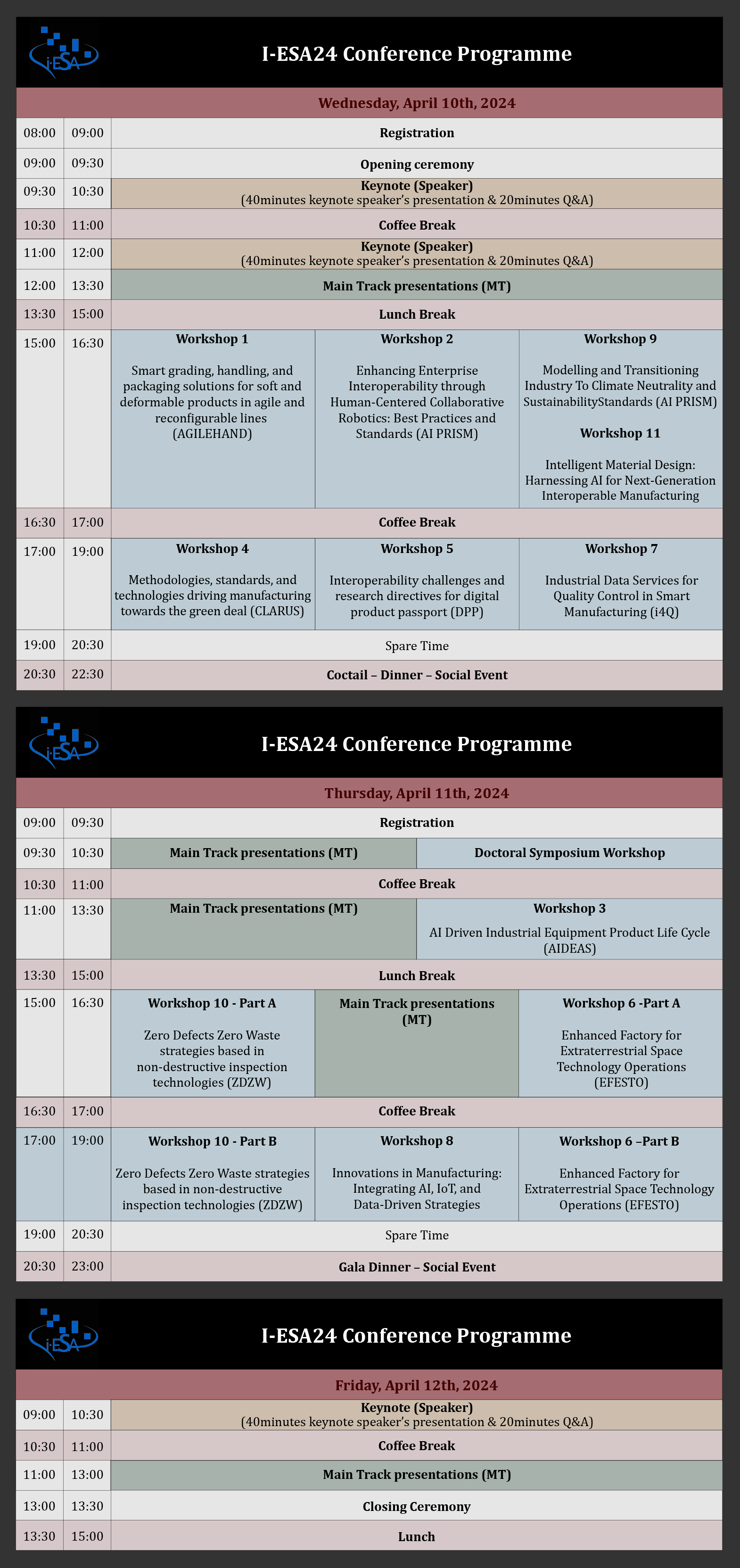 Accepted Workshop Proposals for I-ESA24