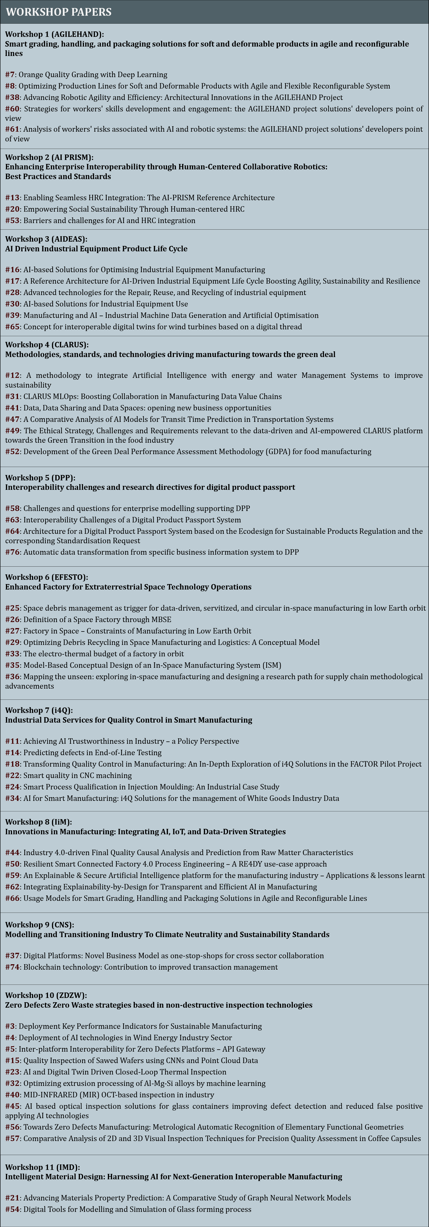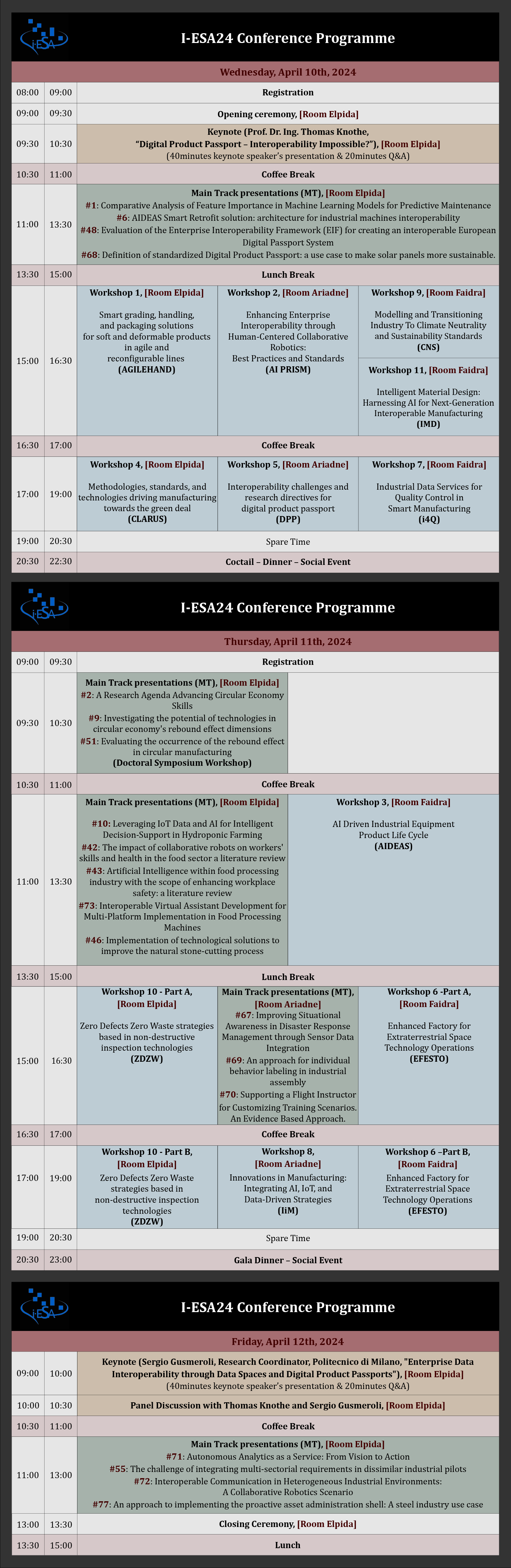 Accepted Workshop Proposals for I-ESA24